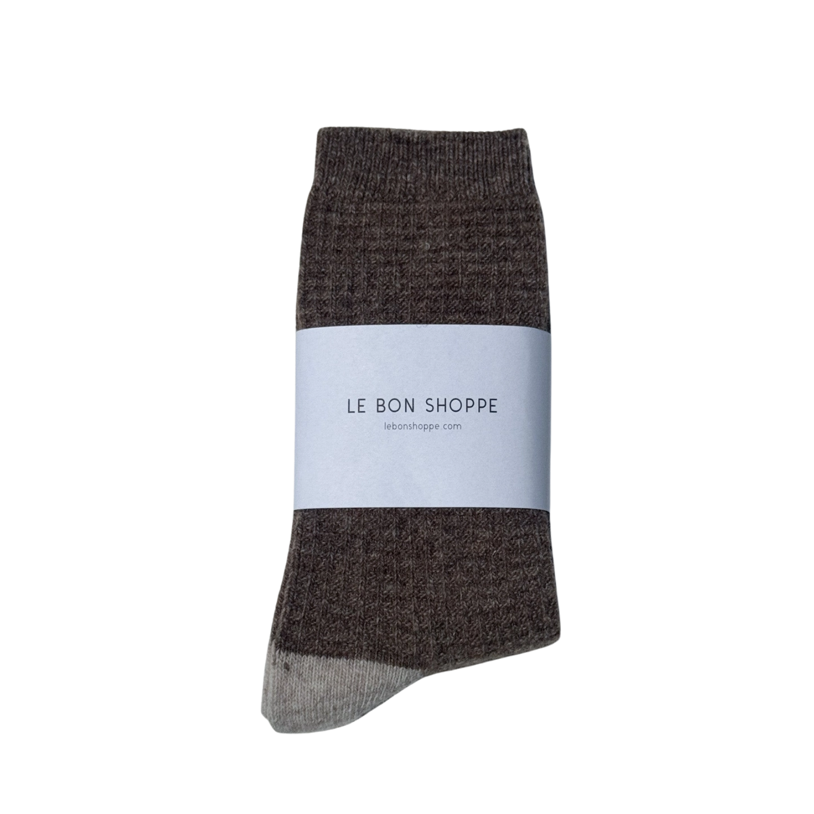 Meet the Wool Waffled Socks. A cozy essential with a lived-in feel, like a favorite pair you reach for again and again. Features a warm wool blend with a textured waffle knit and finished with a contrast toe and heel.