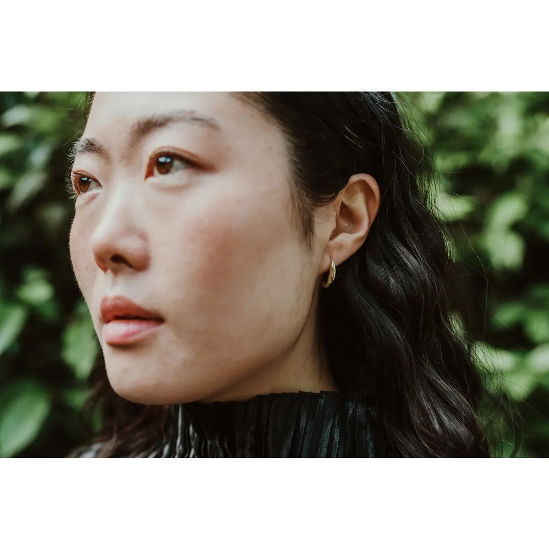 These thoughtfully designed hoops begin as hand-carved wax pieces before being cast in sustainable recycled bronze, paired with gentle 14k gold-filled ear wires. The Aila Hoops celebrate your commitment to mindful choices—lightweight and beautifully minimal, they're here to support your everyday style journey. Measuring .75" long, they're the perfect companion for any occasion, offering understated elegance that works with who you are.