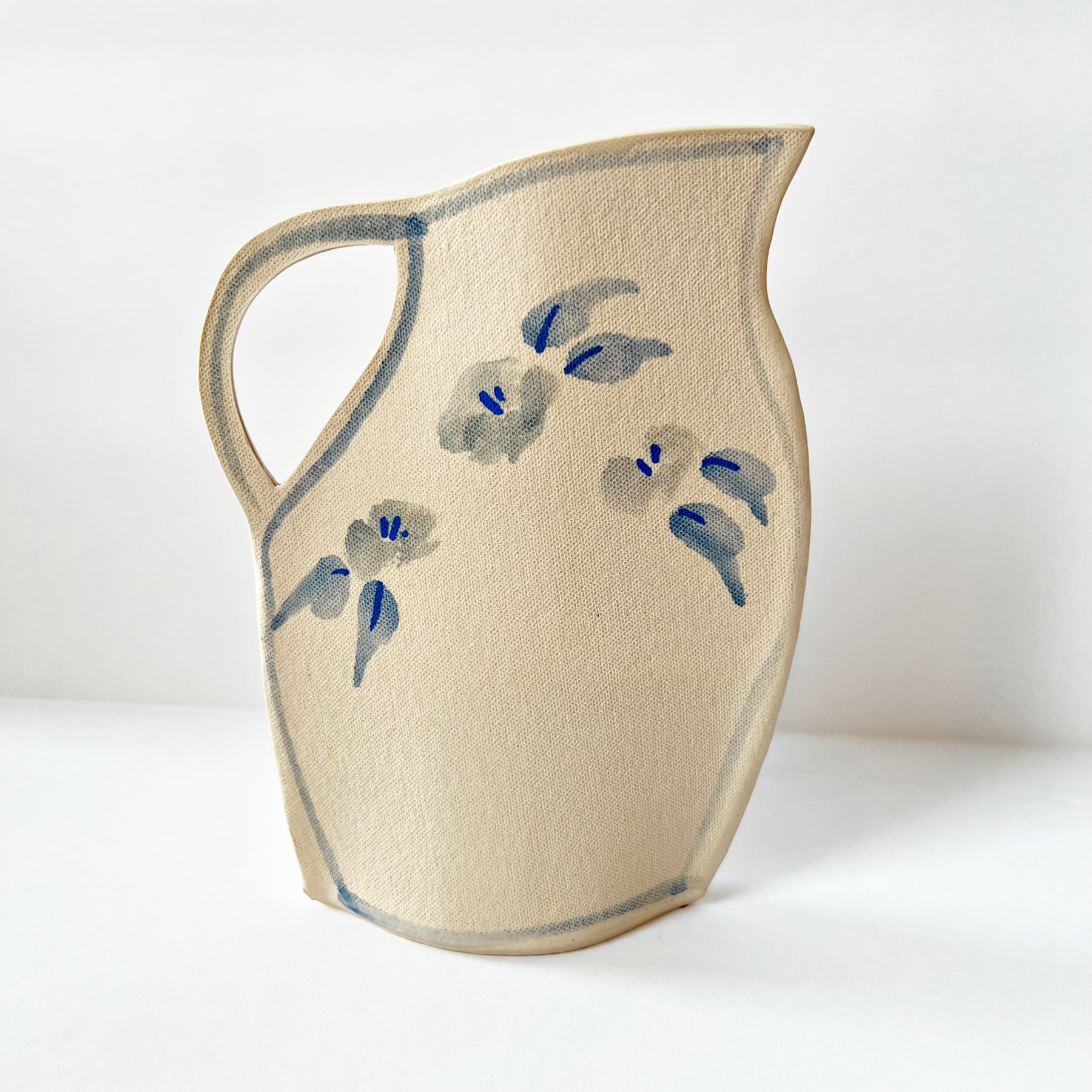 Unique Stoneware vase with clear glaze inside and underglaze decoration outside.