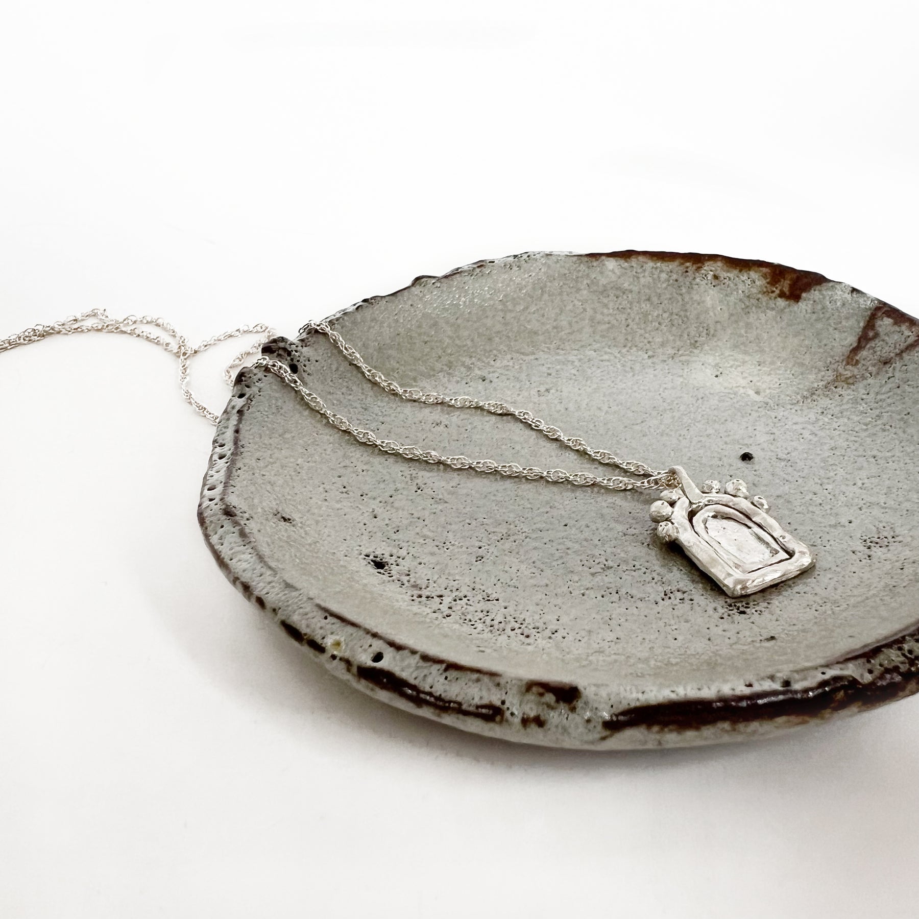 Handcrafted in brass, The Daan Necklace is a symbolic space—an abstract shrine with layered passageways and doorways, each one leading to the next. It’s a reminder to keep moving, to step into the unknown, to let this life happen.