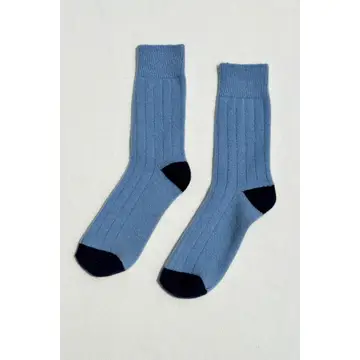 A vintage-esque Cashmere blended socks with a wide ribbing detail and tonal contrasting heel and toe. This elegant and classic sock will be your go to gal during the colder season.